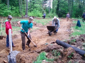 Under the direction of Krug and Adair, we moved dirt for about three hours with wheel barrows and unearthed several huge rocks in the process. There was plenty of sweat and homemade muffins. One of the highlights was watching a black bear cub amble by the track.