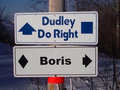 Greenwood's 50-year-old Mt. Abram oozes nostalgia with an unassuming air. There are narrow winding trails linking spacious groomers. No high speed lifts are found, but a t-bar is. The trails are named after those cartoon characters: Bullwinkle, Dudley Do Right, Boris Badenov, etc.