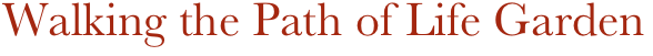The paths wind through life's various stages of birth to adventure, learning to hope, creativity to community. A single stone surrounded by herbs and a ring of Stonehenge-like rocks express birth. Adventure follows and is displayed in the circular maze of hemlocks brightly green in spring with its bell in the center rung by those who make it to the middle. The lone white oak atop the Hill of Learning is the Tree of Wisdom with its nuts containing knowledge. Colorful prayer wheels, much like those from the Tibetan culture, can be spun and reflect hope.
